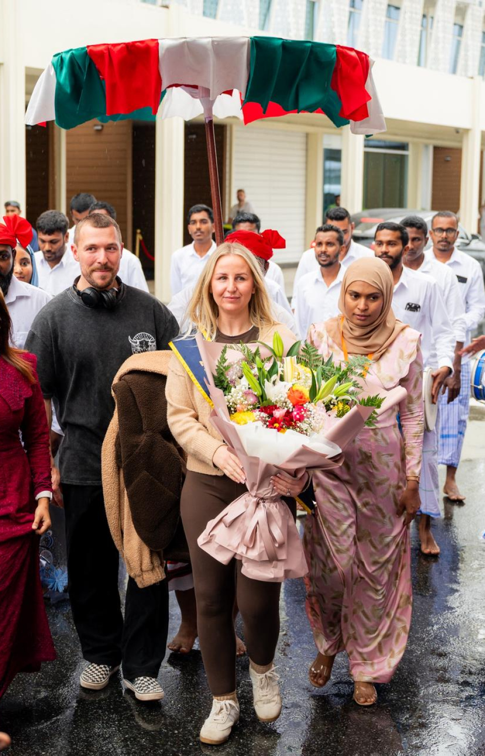 Bethany Sarah Carswell, 30, is holidaying at Outrigger Maafushivaru Resort with her husband. The couple were greeted on arrival with traditional bodu beru drums and presented with gifts to mark the milestone, including a week-long stay at the Standard Maldives Resort.