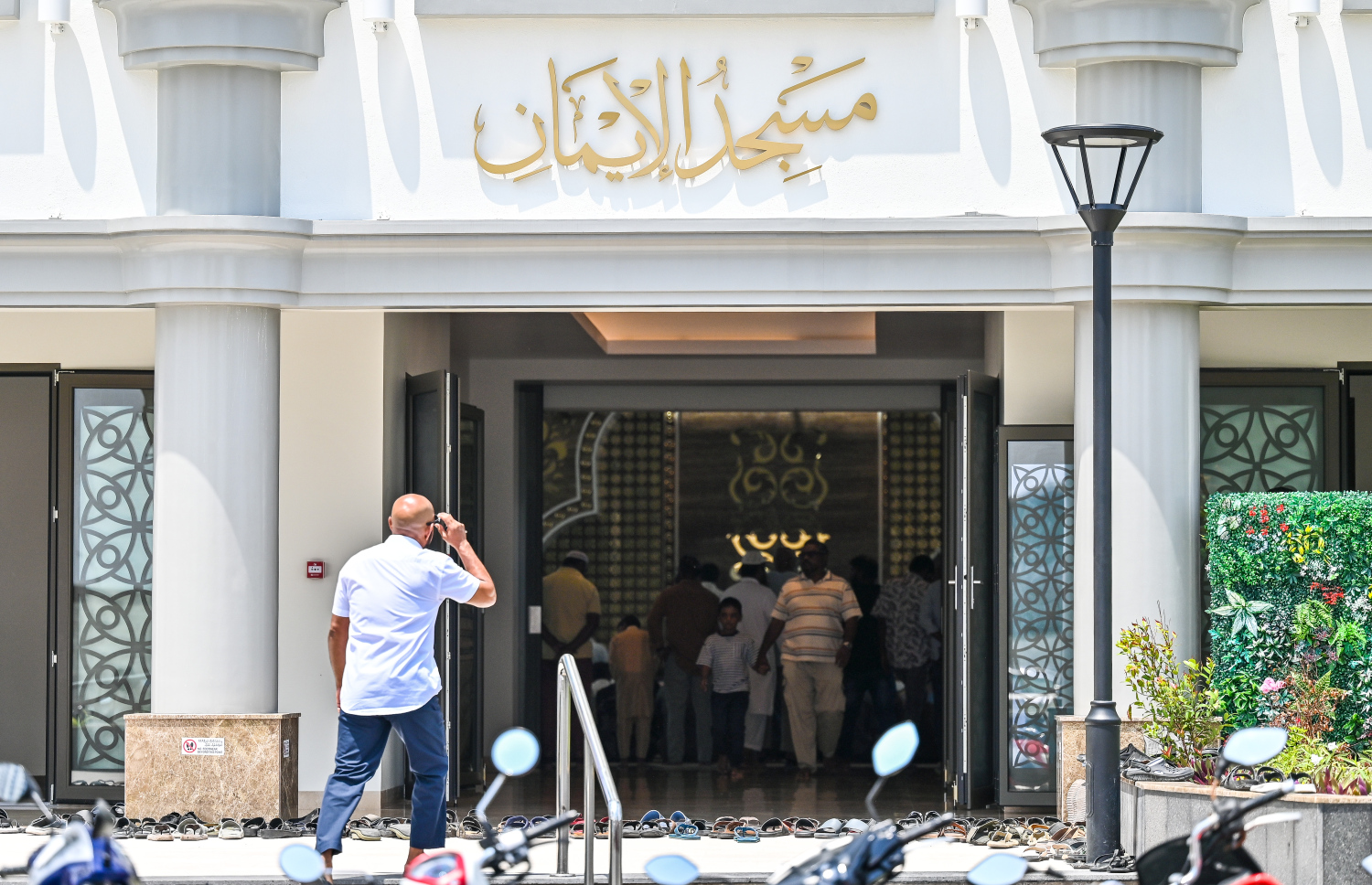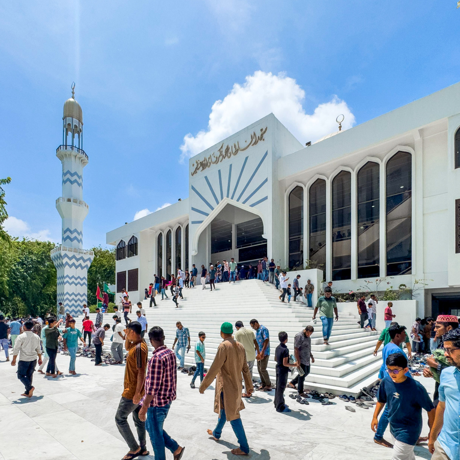 People arrive at Masjid Al Iman for Friday prayers. -- Photo: Fayaz Moosa / Mihaaru