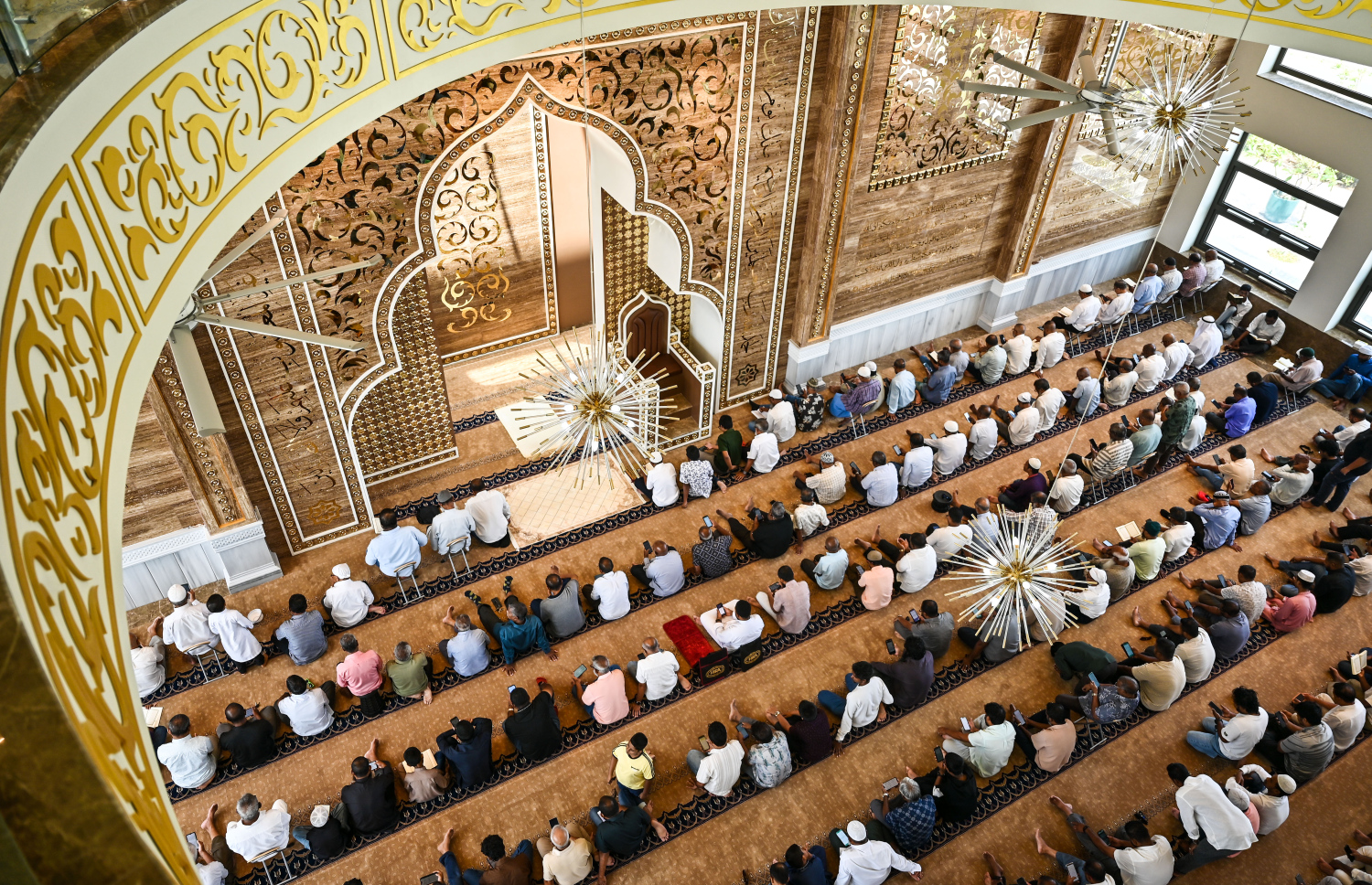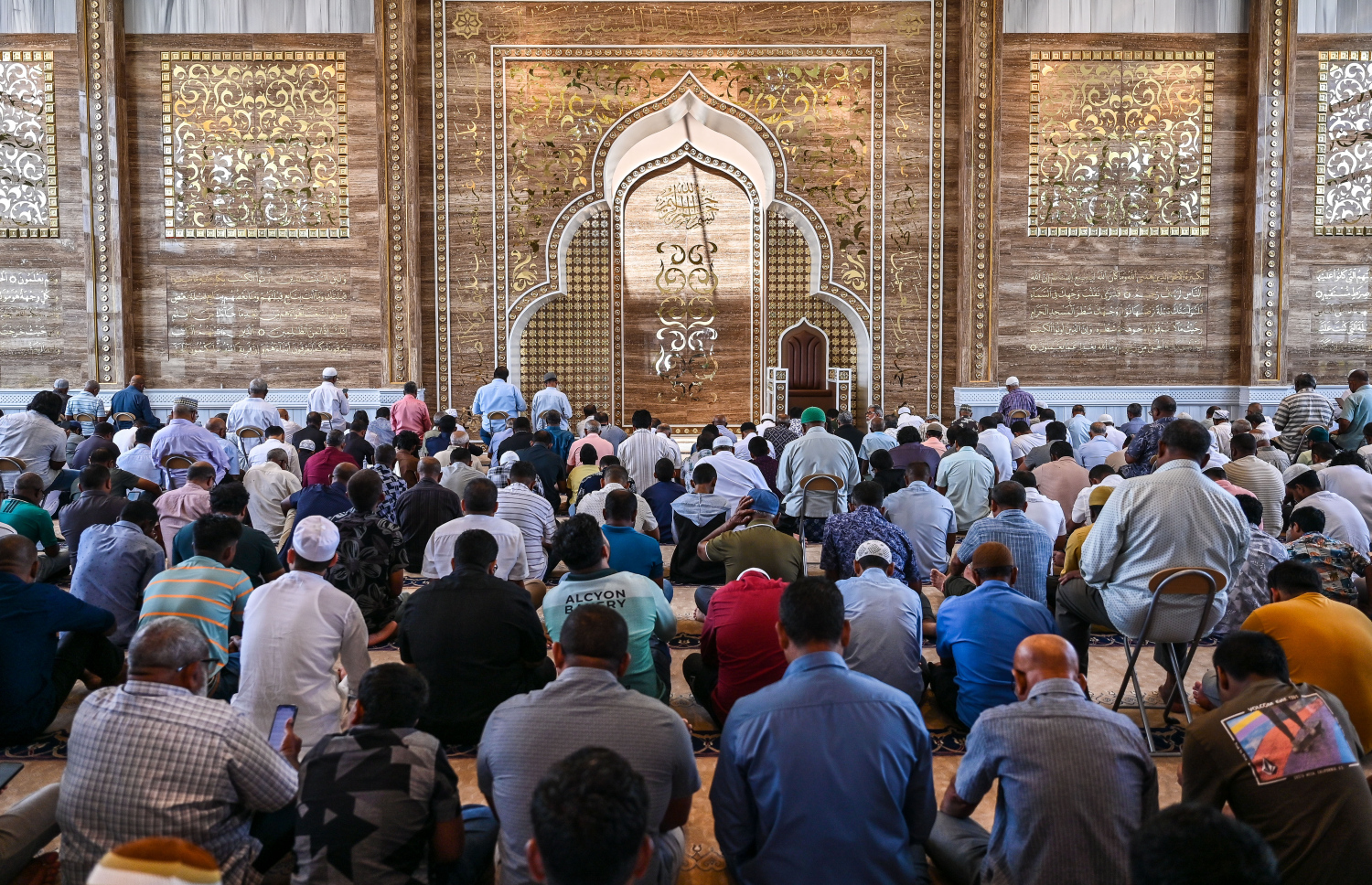 People sit in rows during the Friday sermon at Masjid Al Iman.-- Photo: Fayaz Moosa / Mihaaru