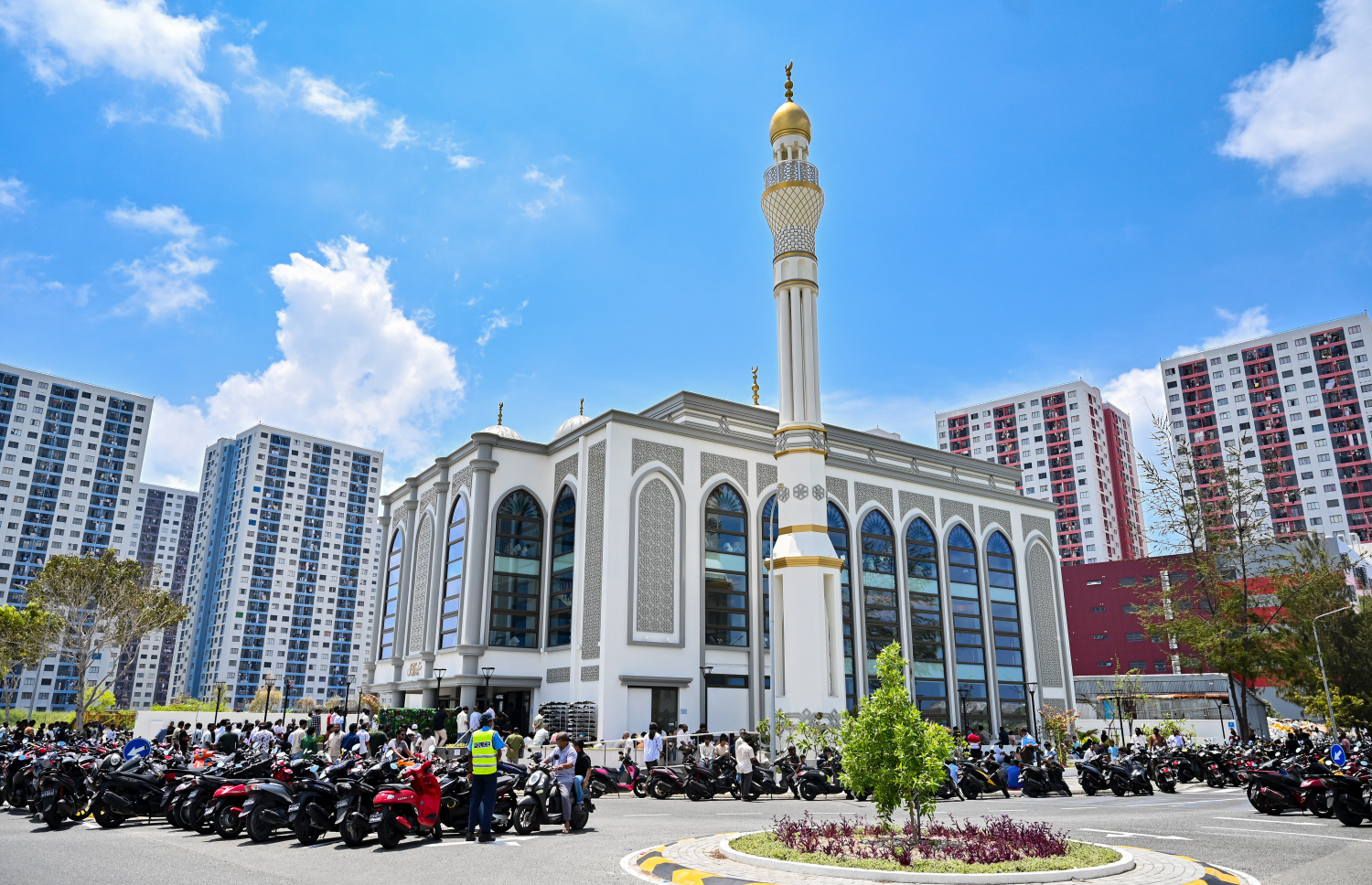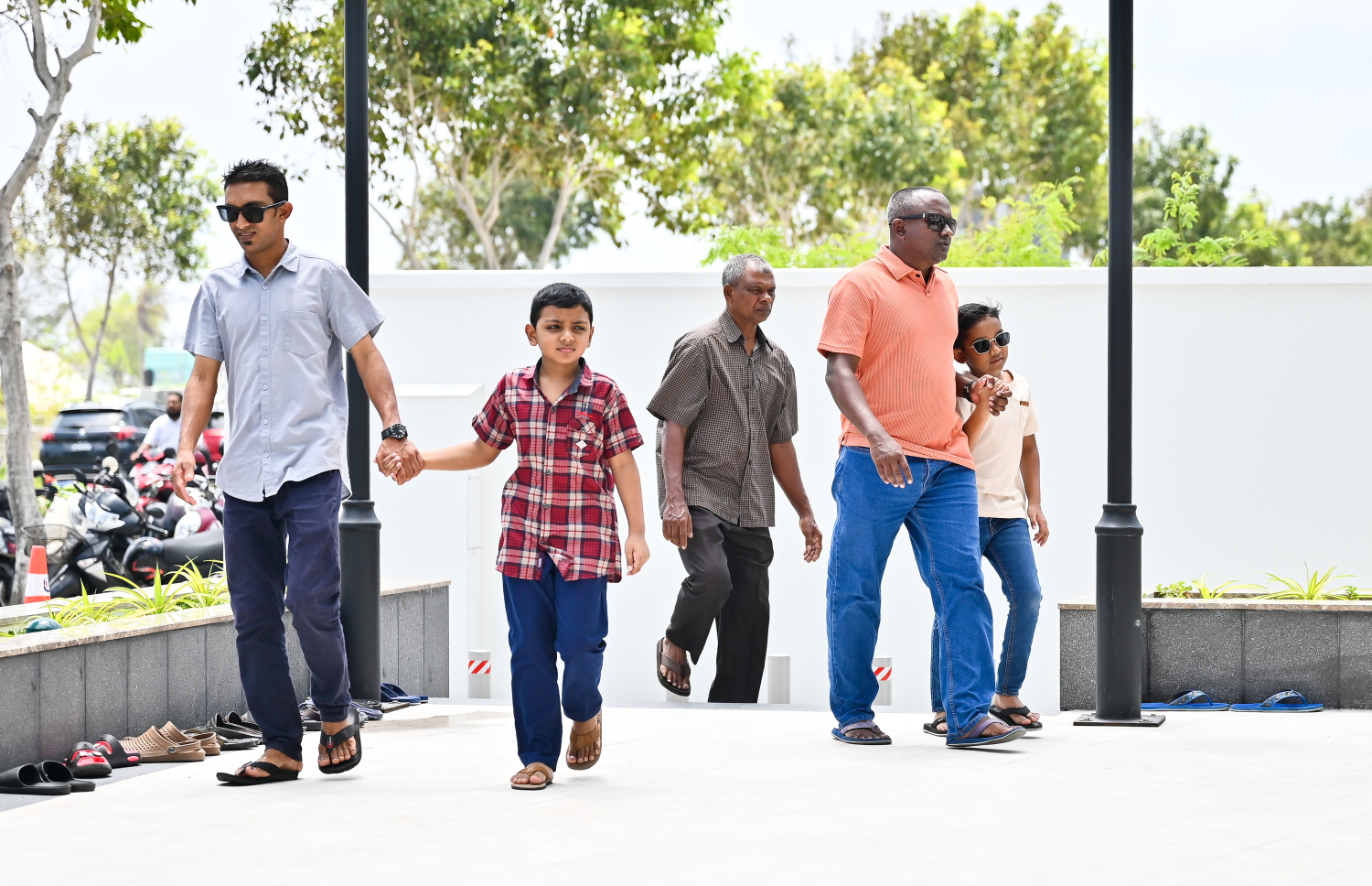 People arriving at Masjid Al Iman in Hulhumale' Phase 2 for Friday prayers.-- Photo: Fayaz Moosa / Mihaaru