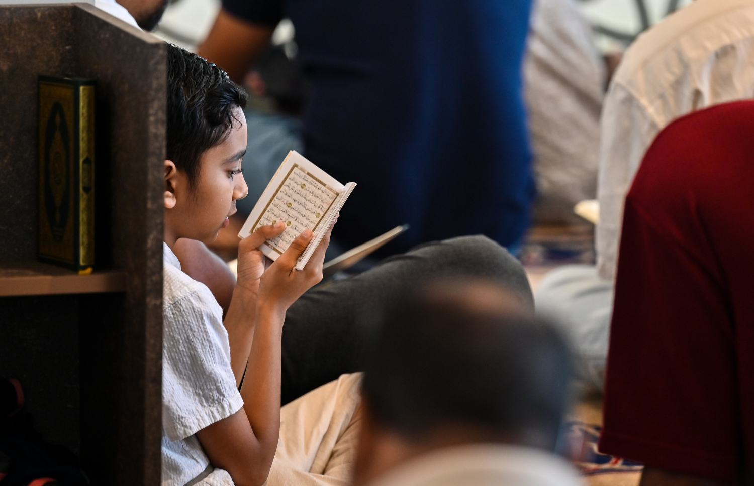 A boy recites Quran in the mosque.-- Photo: Fayaz Moosa / Mihaaru