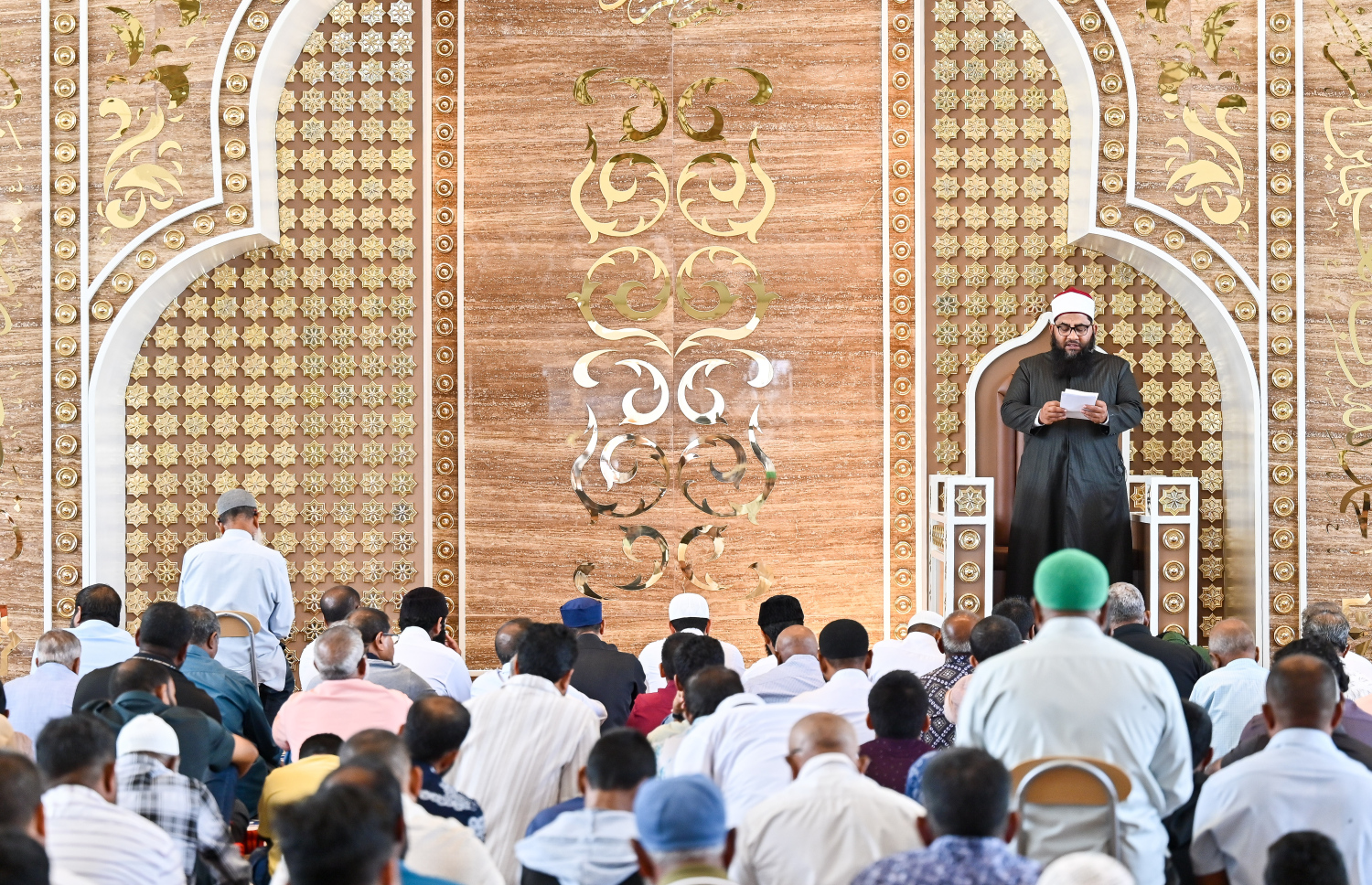 The congregation listens as the Friday sermon is delivered.-- Photo: Fayaz Moosa / Mihaaru