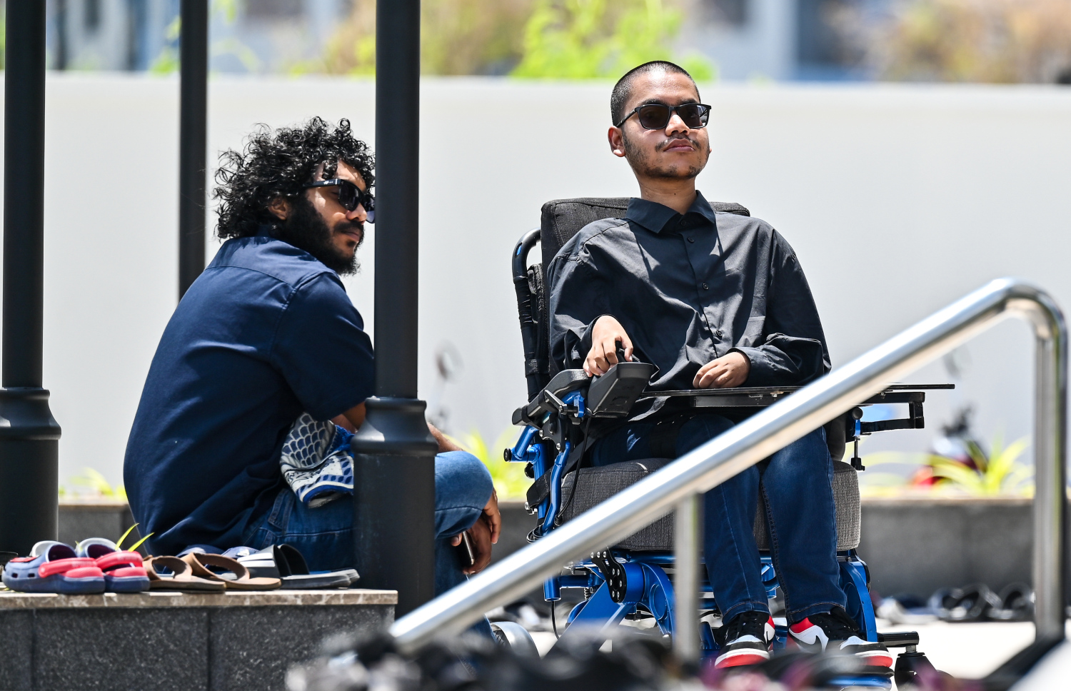 People wait outside Masjid Al Iman before Friday prayers.-- Photo: Fayaz Moosa / Mihaaru