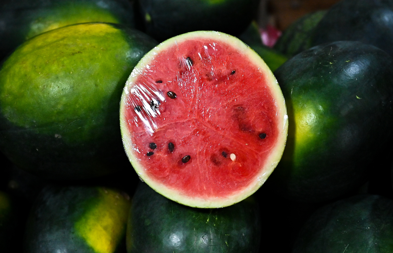 A watermelon at the local market: Watermelons are the highest in demand during Ramandan, with a kilogram costing MVR 25 -- Photo: Fayaz Moosa | Mihaaru