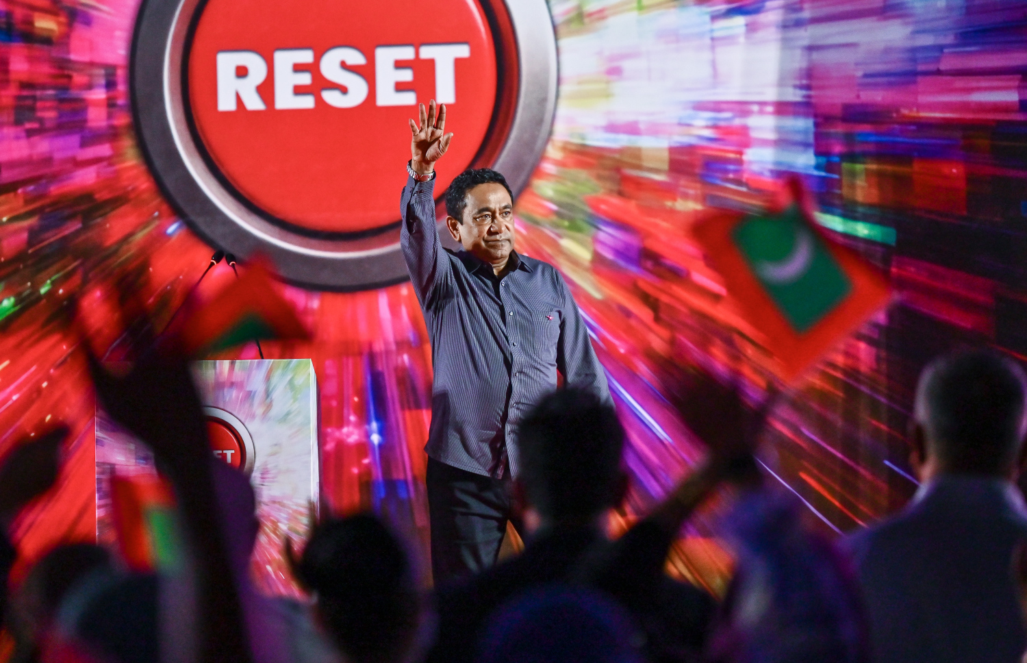 Yameen made these remarks during the "Reset" gathering organized by his party, PNF, at Artificial Beach last night. His comments came in response to a question from a member of the public regarding how PNF would proceed in the 2028 presidential election if Yameen were unable to contest.
